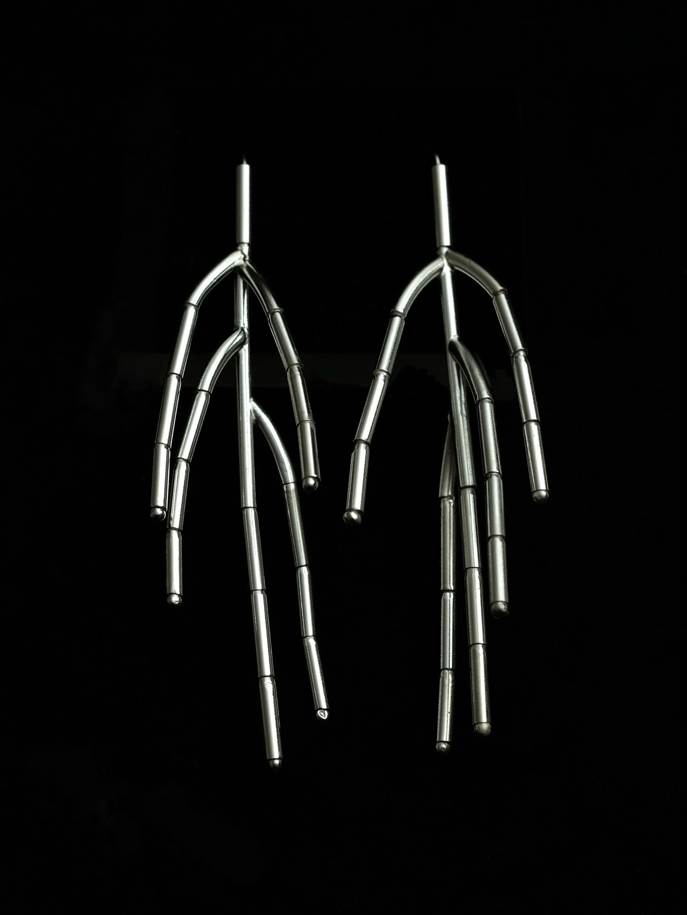 The earrings have been meticulously formed from sterling silver to immortalise plants in my house and garden that have, for one reason or another, demanded my attention. These plants have strained against their boundaries, growing in spite of rather than because of me.